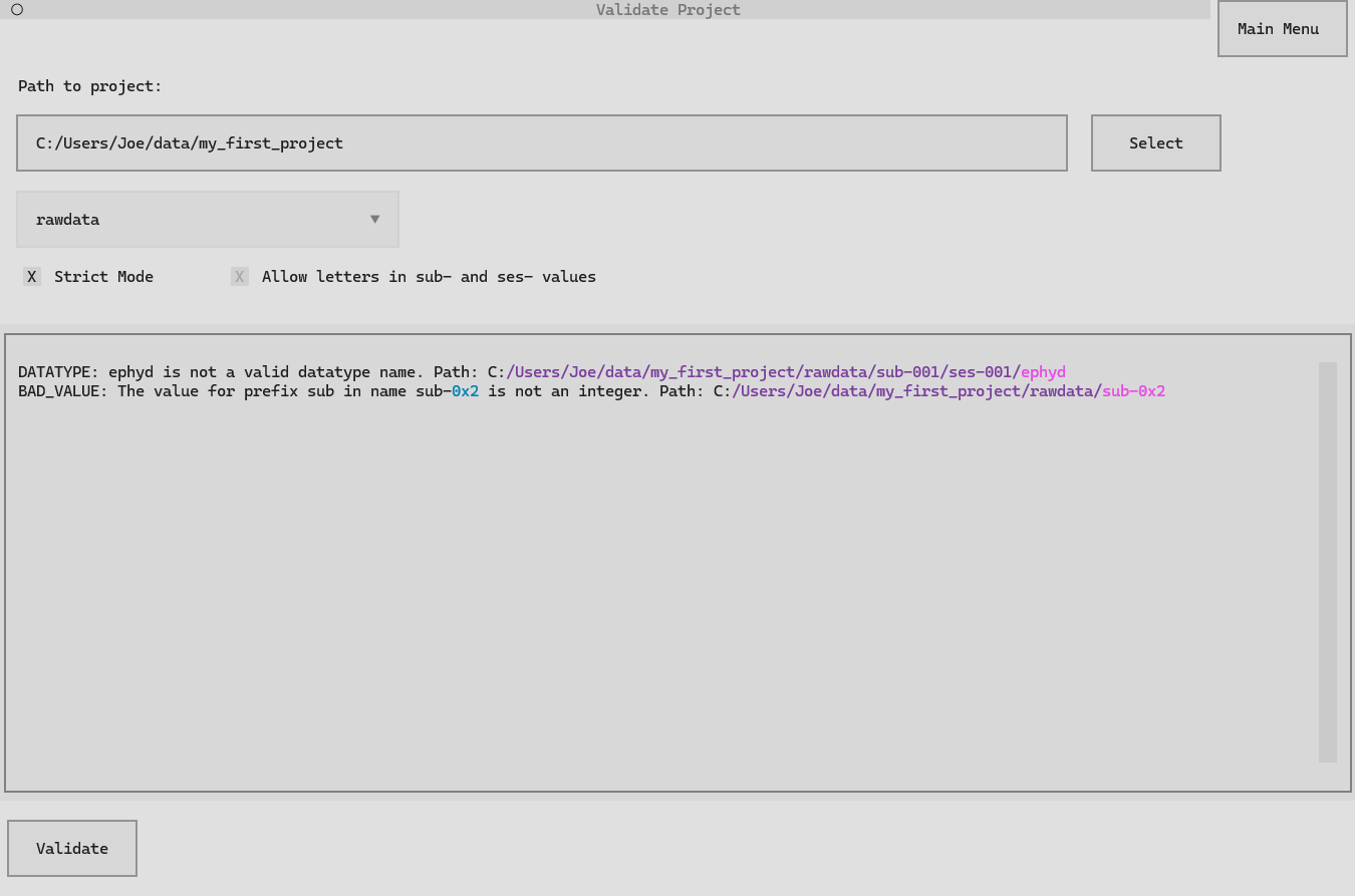 See the Validate Folders tutorial and datashuttle.validate_project_from_path()