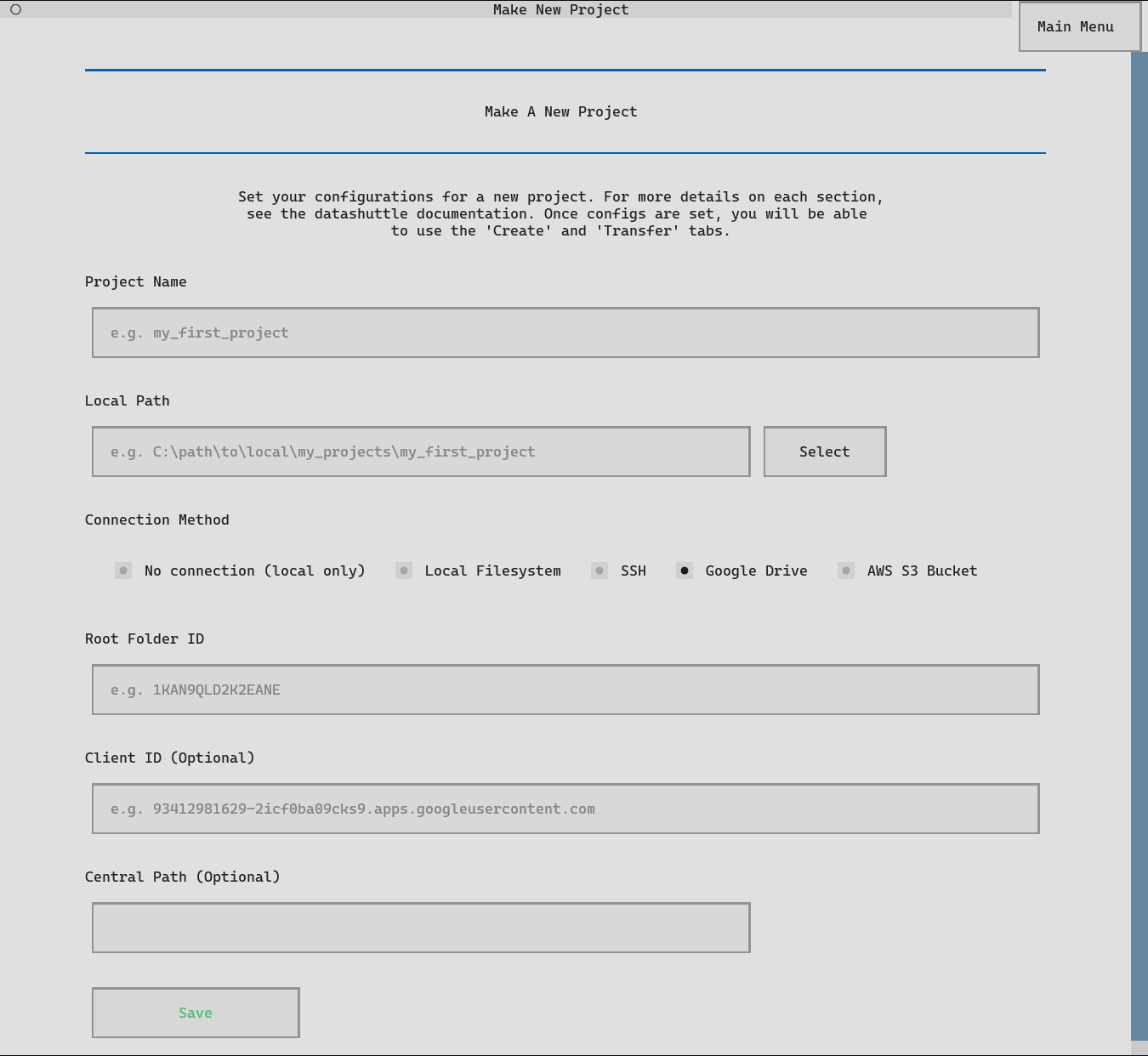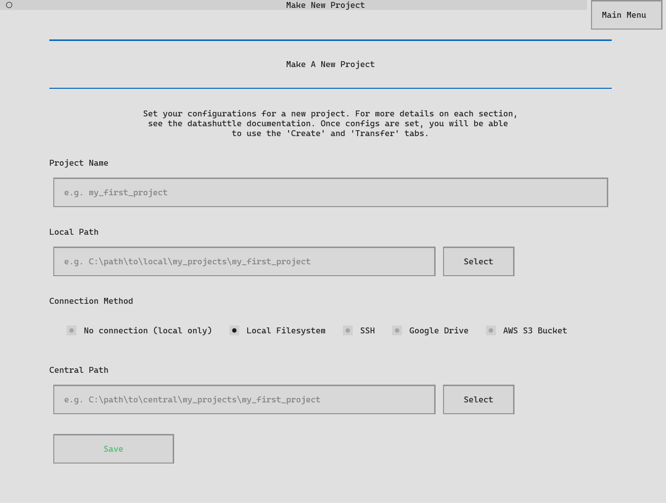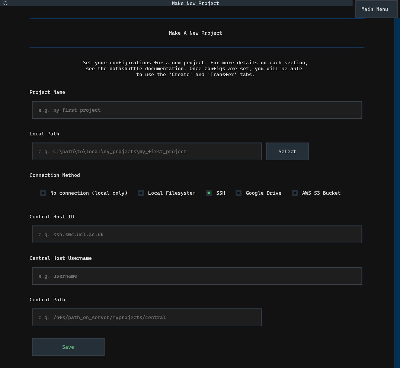 Setting up datashuttle is as simple as entering the Project name,