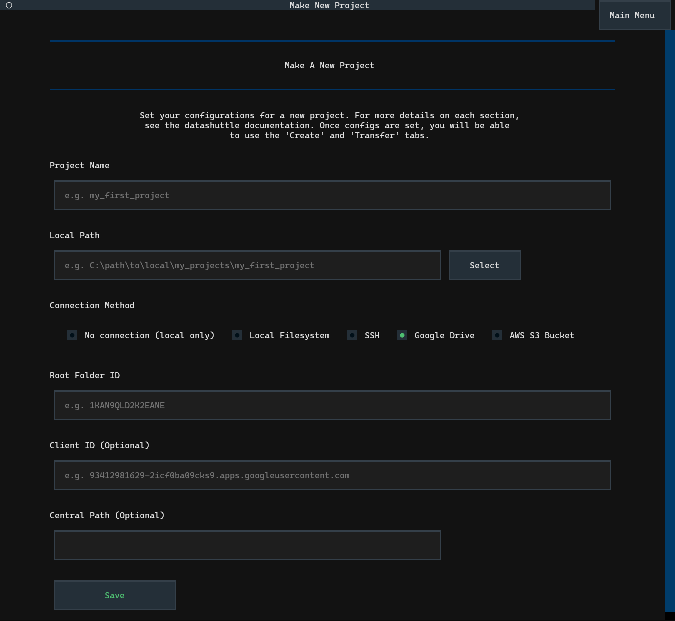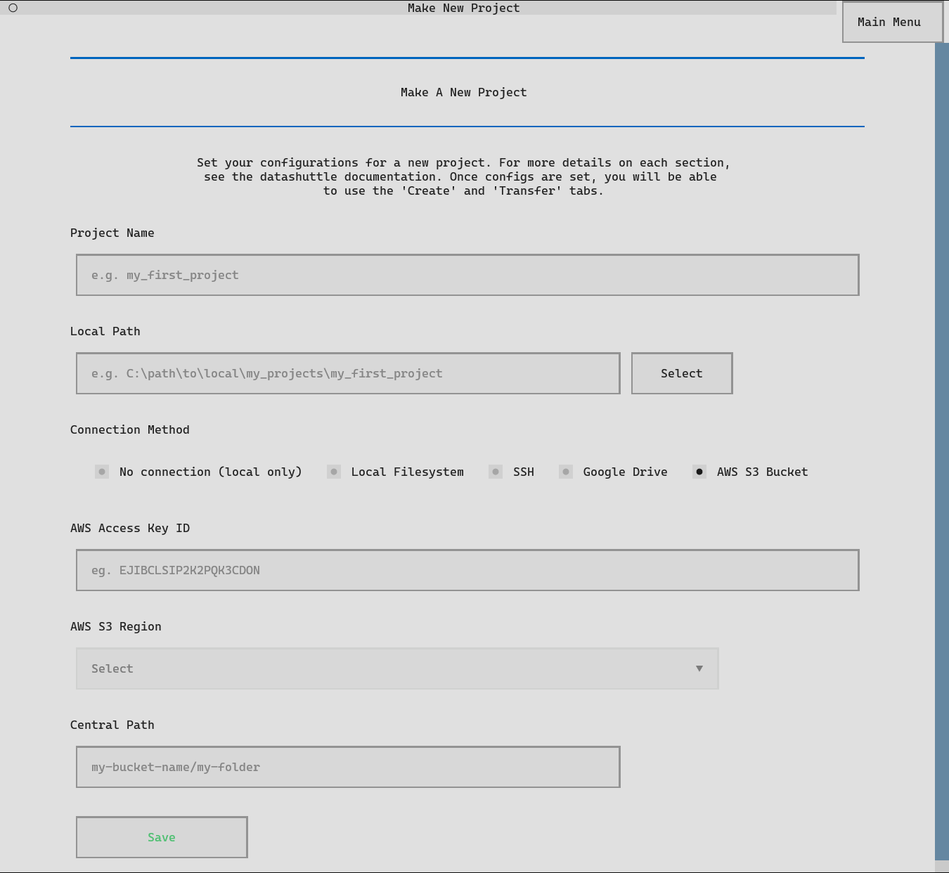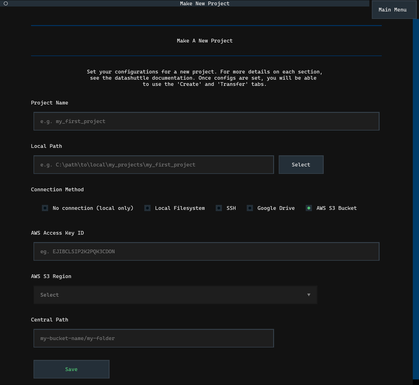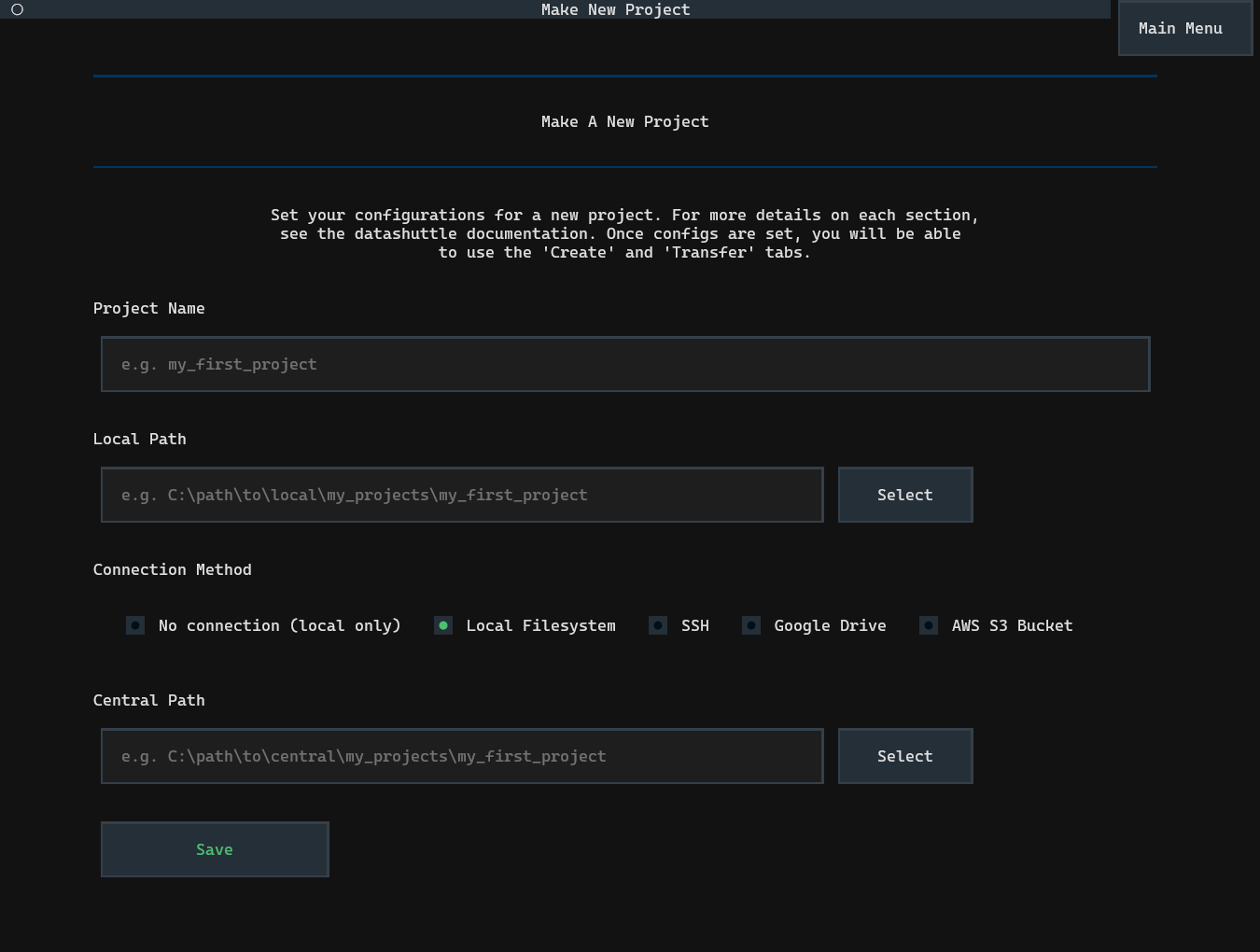 Setting up datashuttle is as simple as entering the Project name,